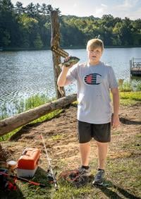 Parker Fogelbach, 12, of Festus catches his first fish at the Twin City Days Hooked on Fishing Event.
