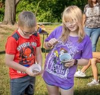 Lucy, 10, and her brother, William Sitzes, 9, from Festus participate in Twin City Days Money Pit. As the music plays, children search for money until the music stops.