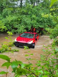 “She hydroplaned or skidded off the road and ended up in a flooded ditch,” Stamberger said. “We had two swift-water technicians who got into wet suits and assisted the girl out of the car and onto high ground.”