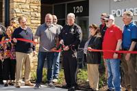 Police Chief Michael Wiegand cuts the ribbon with prominent members of the Eureka community.