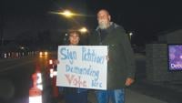 Shawn and Beverly Fleming, a married couple from Festus, brought signs calling for a public vote on the matter and stood on the sidewalk along Main Street, drawing honks from a number of drivers as they passed by.