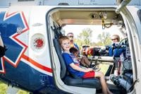 Wyatt Lovejoy, 5, of Festus gets comfortable in the LifeNet Farmington rescue helicopter.