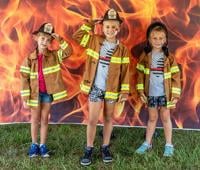 Tamara Maupin, 7, of Hillsboro, left, Rilynne Delarber, 8, of De Soto and her sister, Leanna, 6, pose as firefighters.