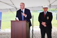 Jefferson County Executive Dennis Gannon, left, and Sheriff Dave Marshak were among the about 40 people at the groundbreaking ceremony for the forensic crime lab on May 6 in Pevely.