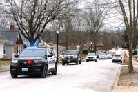 Crystal City Police lead a parade of vehicles through Crystal City to Crystal City High School for the ceremony.