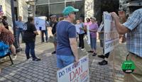 "I've been here 30 minutes and I've officially spent more time here than Dan Meuser," Heisler pointed out as the protesters gathered on the sidewalk in front of Meuser's empty offices.
