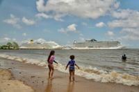 Two cruise ships tower imposingly over a sleepy port in the Brazilian Amazon where some 50,000 people are gathering for a UN climate conference.