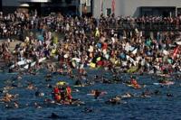 "They slaughtered innocent victims, and today I'm swimming out there and being part of my community again to bring back the light," security consultant Jason Carr told AFP.