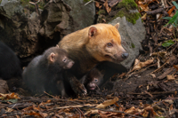 Bush dogs are found in the Amazon Basin and other parts of South America, living in social groups of up to 12 individuals.