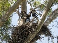A careful operation saw the wedge-tailed eagle chick returned to its nest. (Jo Howell / Zoos Victoria via SWNS)