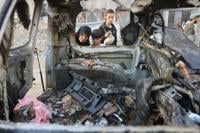 An AFP photographer at the scene witnessed passers-by approaching the wreckage of the burnt-out car, with children appearing to be trying to salvage food from inside.