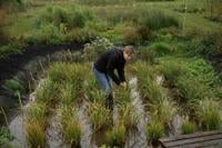 Wearing large rubber boots, Nadine Mitschunas joyfully handled mature rice plants peeking through the water of her small plot growing in the fertile soil of eastern England.