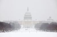 Residents in the capital Washington awoke to a blanket of several inches of snow on sidewalks and roads, followed by heavy sleet.