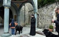 "They are very nice dogs, very peaceful," the Orthodox priest told AFP, as he dished out the morning meal to the thick-coated hounds at their home in the centuries-old monastery.