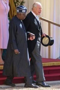 At the castle entrance, Charles and Tinubu inspected a guard of honour in traditional bearskin hats.