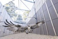 The impressive fishing hawk has since been spreading his wings in the custom-designed facility, which forms a 100-meter loop, like an athletics track for birds, in a bid to improve his flight fitness and maintain good health.