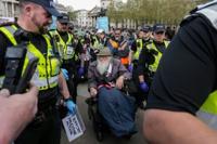 Officers carried away activists to cheers and clapping from other demonstrators who gathered for the sit-down demonstration in the capital's Trafalgar Square.