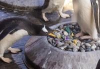Adorable photos show penguins collecting pebbles painted by children in hospital.