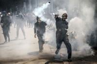 Street battles later broke out between the police and demonstrators, who responded by throwing stones.