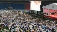 Pope Leo was welcomed at the Mongomo basilica in a supercharged atmosphere, with fireworks and a release of balloons celebrating his arrival, plus a tour through cheering crowds in the popemobile.