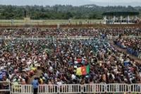 Tens of thousands of people streamed towards a stadium in Cameroon's economic capital Douala Friday for a huge, open-air mass by Pope Leo XIV, the biggest event of a visit marked by his calls for peace and spat with US President Donald Trump.