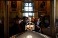 The crown, featuring golden eagles, is covered in 1,354 diamonds and 56 emeralds, according to the museum's website.