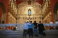 The men prayed together and then left, as the faithful at La Candelaria church clapped.