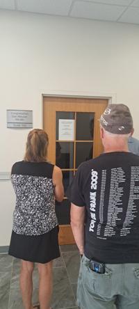 James May, Meuser’s regional director, is stationed at the office, but a sign on the door listed his phone number and email, noting he was “on the road meeting with constituents.”