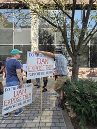 In the midst of the event, a protester came out from the building housing Meuser’s satellite office to tell the group that no one was present.