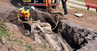 The industrial vacuum machine, normally used to excavate buried utility cables, was used to help remove the soil from around the head which was then craned out of a two-meter-deep hole.