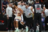 Oklahoma City's Ajay Mitchell came up to confront Champagnie and was smacked in the face for his trouble to ignite the brawl.