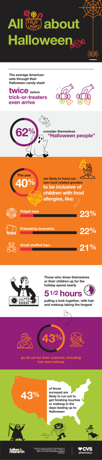 Conducted by Talker Research on behalf of CVS Pharmacy, results showed that about a third of respondents identify as early planners who stock up and decorate by Oct. 1, while nearly as many admit to being last-minute shoppers.