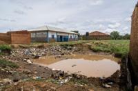Mvubu's field is located directly within the path of runoff water from the CDM site, surrounded by an imposing concrete wall guarded by officers, on a mountain overlooking residential neighbourhoods.