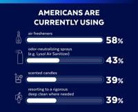 In the raging battle against all odors, Americans are currently using air fresheners (58%), odor-neutralizing sprays (43%) or scented candles (39%), or resorting to a rigorous deep clean where needed (39%).