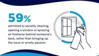 Results showed that it’s not always easy to tackle the topic. Fifty-nine percent even admitted to secretly cleaning or dealing with a scent, opening a window or spraying air freshener behind someone’s back, rather than bringing up the issue derived from a smelly passion directly.