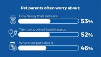 The poll of 2,000 U.S. pet parents, nationally representative and split between respondents with dogs and respondents with cats, found they often worry about their pets' general well-being, from how happy they are (53%), to their overall health status (52%), to what their diet is (46%) and if they're anxious or stressed (41%).