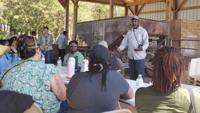 “What I want y’all to get from this is you can start today,” farmer Travis Cleaver says, motioning to the chicken coop behind him.