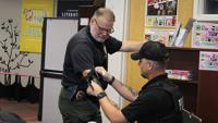 Strathmann walked officers through alternate ways to apply tourniquets on children and other patients who are too small for normal equipment. The officers also were trained on using gauze for packing gunshot wounds.