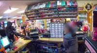 Surveillance footage reportedly showed a man wearing a black hooded sweatshirt and black gloves and covering his face with a black mask enter the store with a shotgun. He was followed by another man wearing a blue hooded sweatshirt, a baseball cap with a yellow bill under the hood and black gloves and covering his face a white mask, according to the footage.