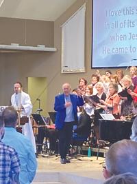Bobby Schroeder conducting the choir during an Easter service this year.