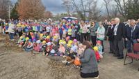 About 400 people attended the groundbreaking. The school’s students, who were wearing different colored plastic hard hats, were among the crowd to watch church and school staff, area officials and others take turns shoveling dirt at the ceremony.
