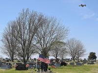 An A-10 Thunderbolt II, commonly known as a warthog, from the Whiteman Air Force Base flies over on Monday at the Knob Noster Cemetery in Knob Noster. People often gather in the cemetery to spot planes during practice operations, according to DD Smith, a long-time resident of the town.