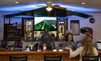 Few barstools and tables were open at the AMVET post around 7 p.m. on a Friday. The outline of a massive metal B-2 is fixed to the bar ceiling. On a whiteboard, the steak surcharge prices were written by the ounce in neon dry-erase marker.