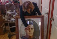Jackie King looks down at a portrait of her grandfather on March 6 at her antique store in Knob Noster. King, whose father was a prisoner of war in Japan during WWII, has been working with a veteran in town to uncover more information about her family’s long military history.