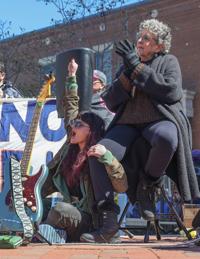 In Columbia, roughly 2,500 people gathered in front of the Boone County Courthouse to listen to speakers, musicians and poets express their grievances against President Donald Trump and his governing practices.