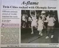 That’s a pretty fair description of the Olympic Torch relay festivities that took place in the Twin Cities Monday evening. The Twin City Chamber of Commerce sponsored the event, which marked nearly the halfway point of the torch’s 15,000-mile journey to the Olympics in Atlanta this July.