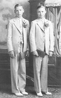 At 13, the twins paid $35 for their first car, a bright red, 1926 Chevrolet.