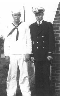 After graduating from Herculaneum High School in 1941, the twins enlisted in the U.S. Navy as pilot trainees. But, with a surplus of pilots, the Navy encouraged them to transfer to a different program. Mr. Elmo Blum chose the Merchant Marine while his brother chose the Navy – the first time the two were separated.