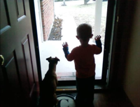 Candi Wagner of Fenton took this picture in January of her “granddog,” Koda, a 5-year-old pitbull. “He always loves seeing Larry,” Candi said.