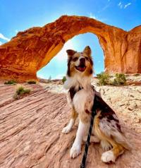 Kim Beaman, 55, of Eureka took this photo about a year ago of Finley, her 5-year-old red merle Australian shepherd. “She is the most fun puppy I have ever known,” Kim said. “The picture is from our first RV adventure with her to the five national parks in Utah. This is actually Corona Arch in Moab, Utah. She loved the hike! She had to climb rock faces and ladders as part of her hike to get there. Just the pure joy in her face every time we hike warms my heart.”
